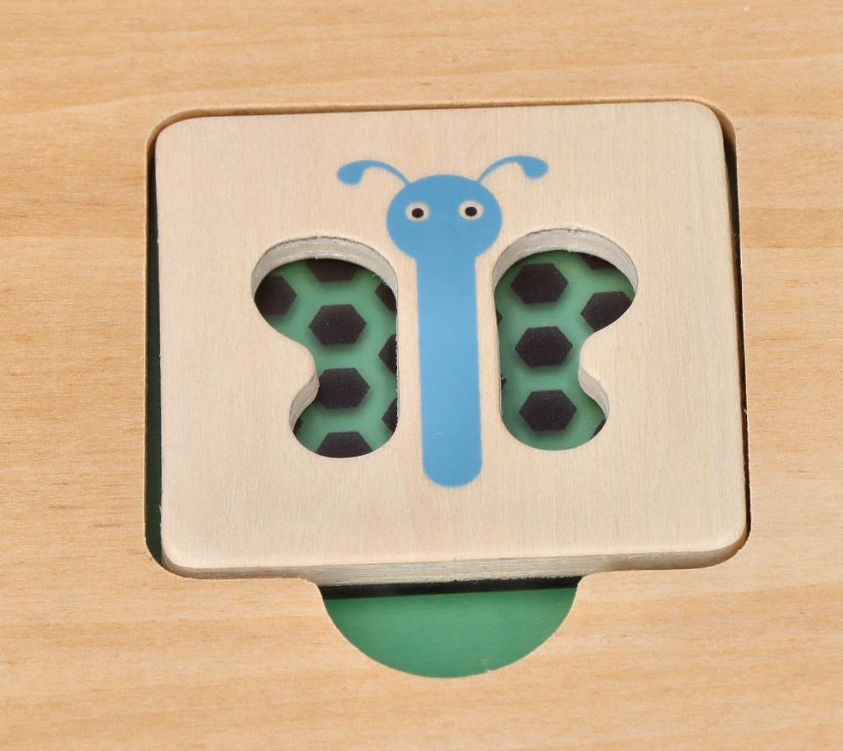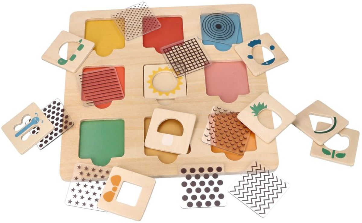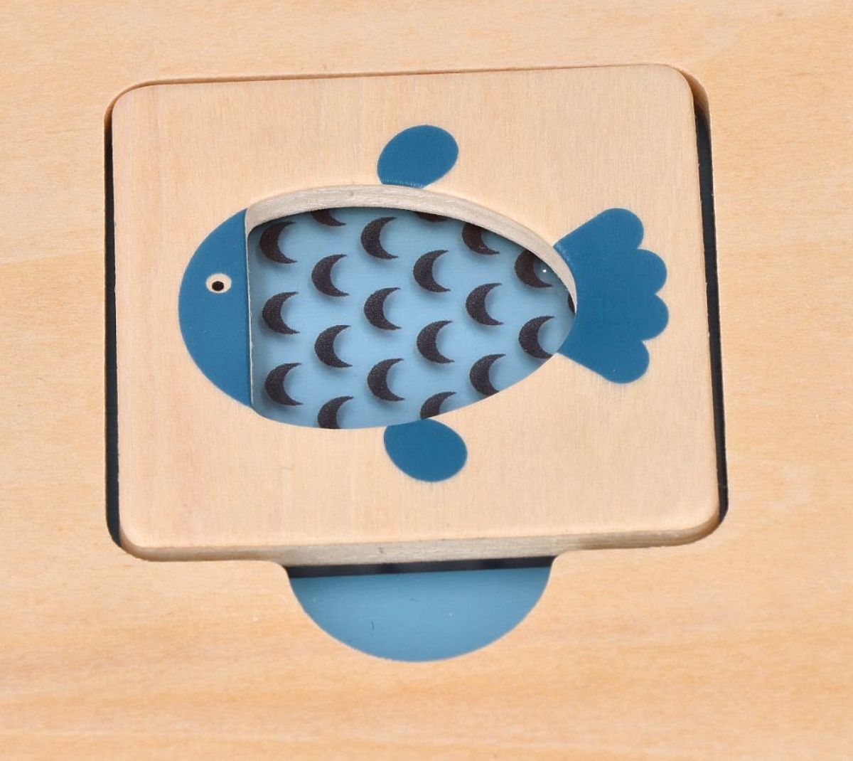 Cum funcționează? Aceste puzzle-uri constau într-o bază cu nouă ferestre în culori diferite. Avem nouă plăcuțe de lemn cu forme decupate, pe care le putem muta liber pentru a obține aceleași imagini în culori diferite, dar asta nu este tot. Cea mai mare distracție o aduc plăcuțele transparente cu modele. După introducerea plăcuței în fereastră, obținem nu doar culoarea, ci și modelul. Abia acum, când adăugăm plăcuța cu forma, apare de exemplu un pepene cu semințe sau o ciupercă cu puncte. Și ce se întâmplă când schimbăm modelele? Aici ne așteaptă cea mai bună distracție. Se dovedește că modelul ananasului, după o rotire de 90 de grade, imită perfect solzii unui pește. Există cu adevărat multe opțiuni. Datorită acestui fapt, această mică jucărie este potrivită și pentru călătorii. Descoperiți câte soluții creative aduce cu ea.
