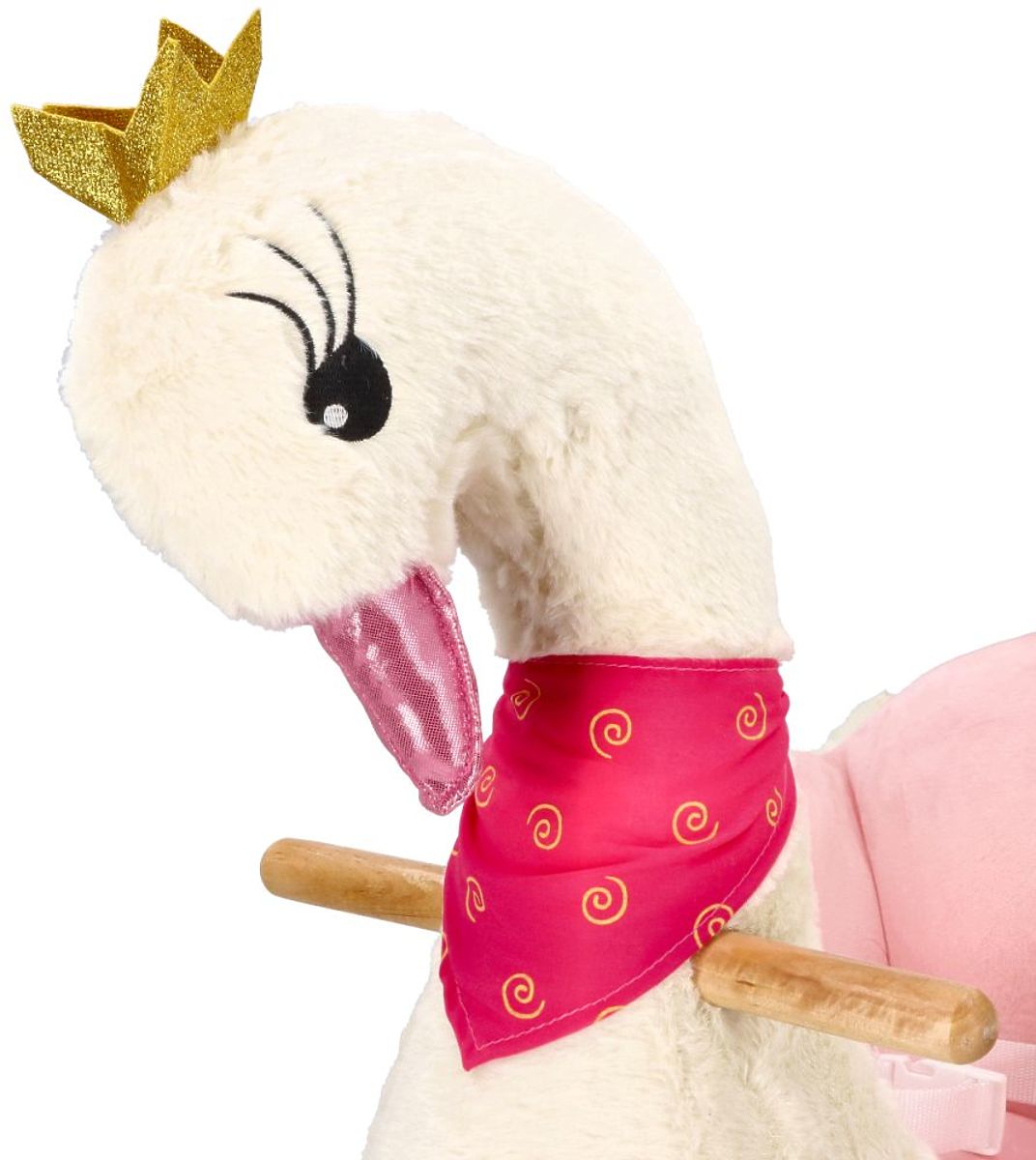 Vă prezentăm regina lebedelor, un cal de leagăn fantastic cu scăunel pentru cei mici. Calul de leagăn este fabricat din materiale moi, plăcute la atingere, cu accent pe detalii,