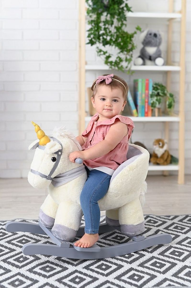 Jucăria dezvoltă imaginația și coordonarea mișcării copiilor într-un mod distractiv. Când se leagănă, copilul trebuie să coordoneze mișcările corpului cu unicornul legănat, așa că își practică echilibrul.