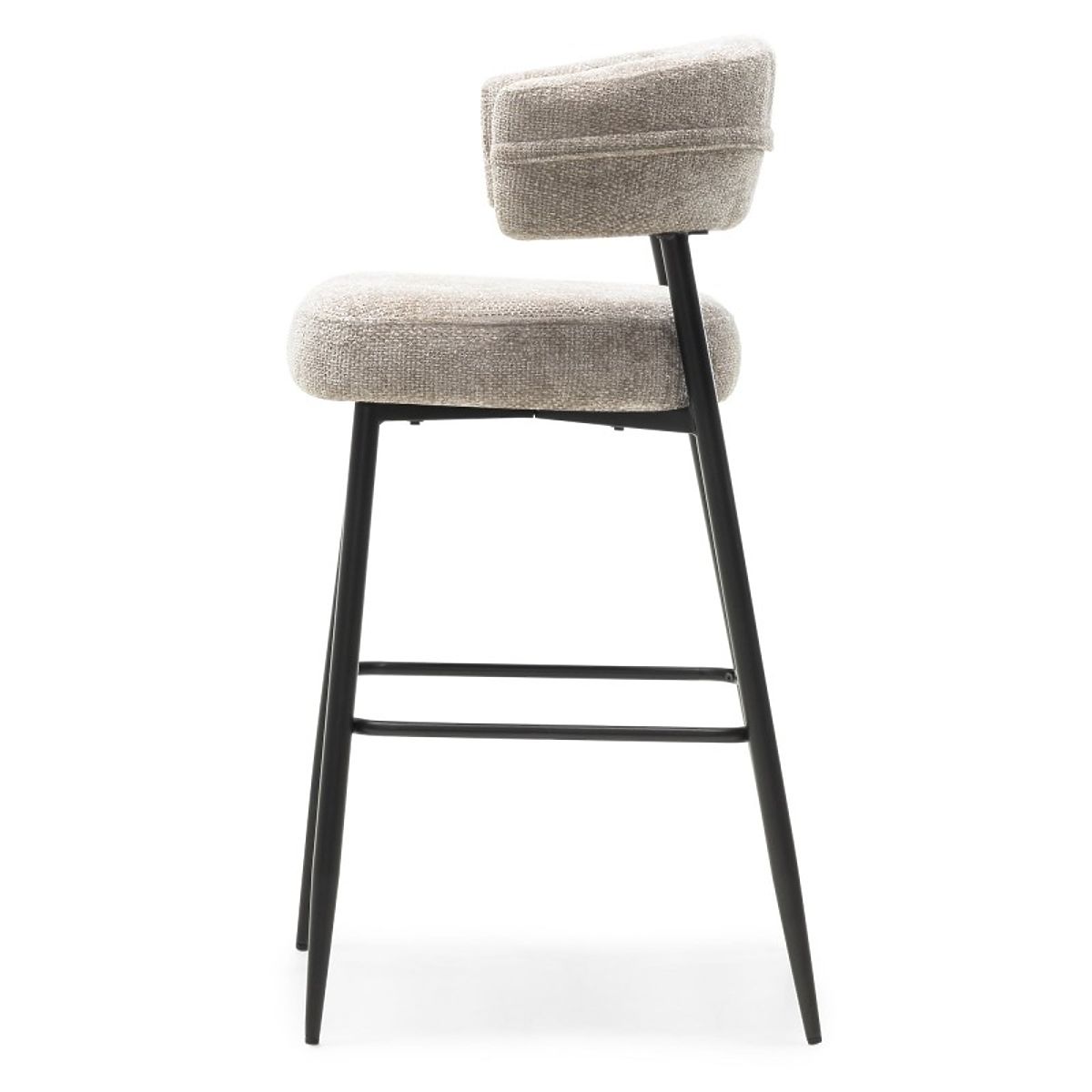 Scaunul de bar Rosario reprezintă eleganța și confortul într-un stil modern. Este echipat cu un spătar rotunjit și un șezut umplut cu spumă, asigurând confort chiar și în timpul șederii îndelungate. Tapițeria din țesătură moale de culoare bej adaugă un sentiment de căldură interiorului.