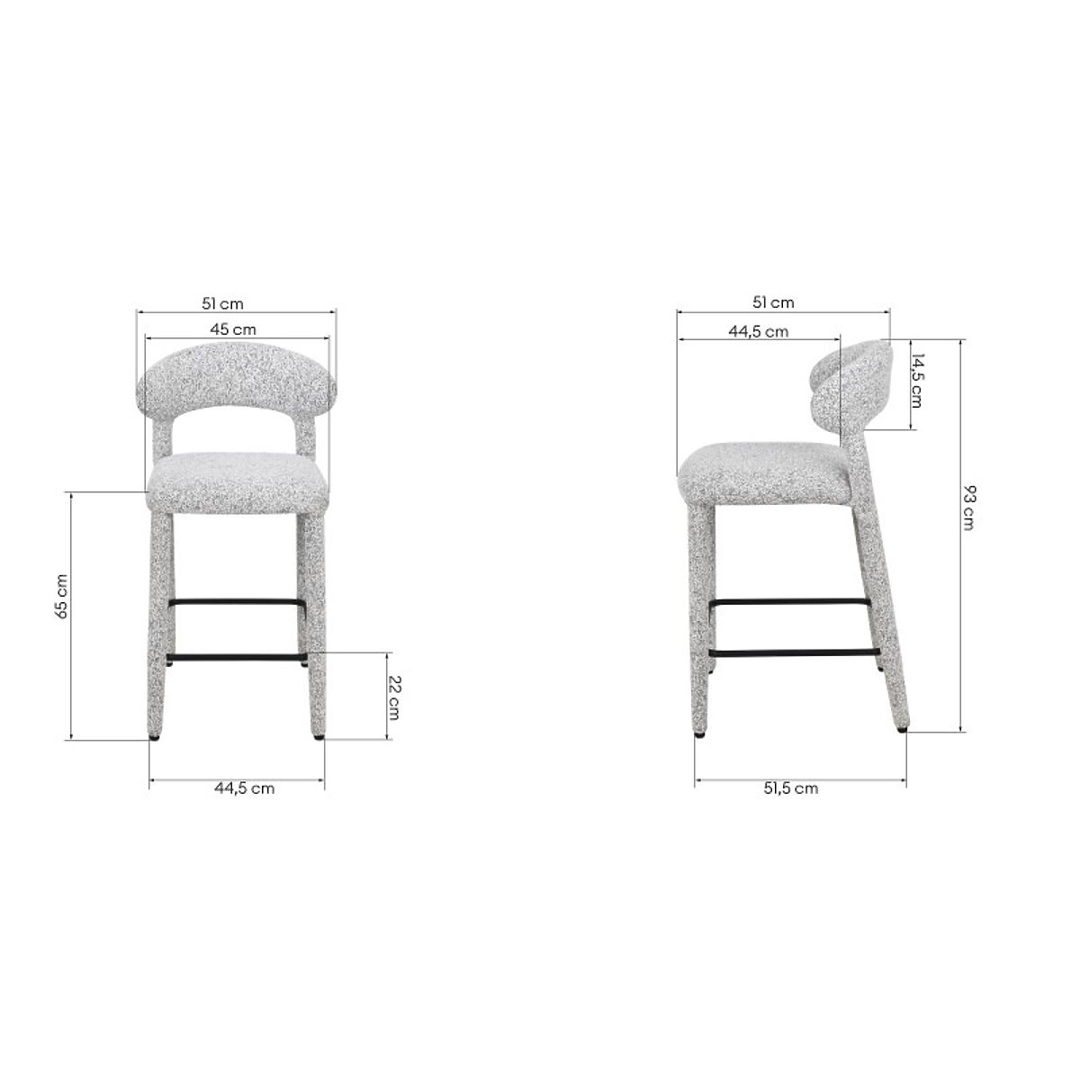 Scaun de bar Hiroki cu melanj bej-gri și spătar rotunjit. .. mai mult