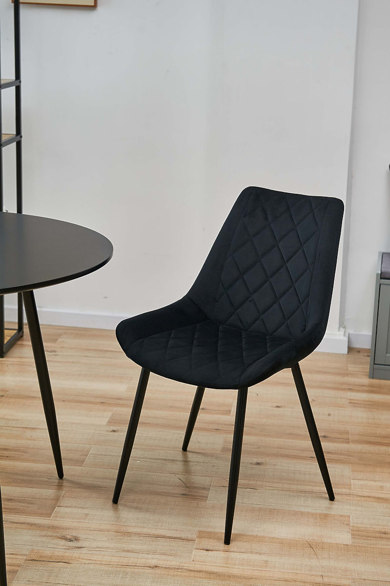 Designul modern și tendințele actuale arată cât de minunat și practic este materialul velur. Această serie de scaune vă este oferită ca un accesoriu pentru interioare moderne și stilate. Scaunul de tip SJ.0488 are picioare metalice de culoare neagră. Aceste picioare se potrivesc atât în interioare clasice, cât și moderne. Tapițeria din velur înconjoară șezutul și spătarul, făcând scaunul plăcut la atingere și confortabil chiar și în zilele de vară. Matlasarea folosită în tapițerie adaugă un aspect și mai elegant și un stil atemporal. Se vinde sub formă de set de două scaune.