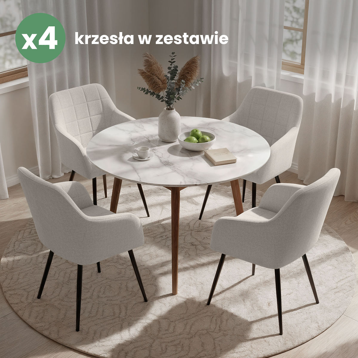 Scaunele tapițate combină aspectul estetic cu confortul utilizării și se integrează bine în diferite stiluri de interioare. Forma lor universală le face potrivite pentru săli de mese, camere de zi sau spații de birou. Sunt disponibile în două variante de material – țesătură Lumos sau velur.
