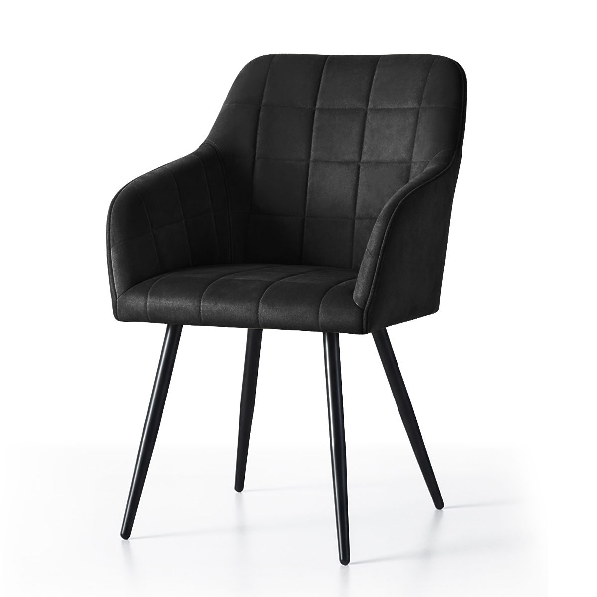 Banaby.ro » Mobilă / Masă sufragerie / Scaun de masă / 4x Scaun tapițat cu cusături pătrate Negru LUXANO Picioare negre