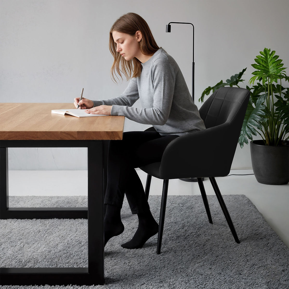 Scaunele tapițate combină aspectul estetic cu confortul utilizării și se potrivesc bine în diferite stiluri de interioare. Forma lor universală le face potrivite pentru sufragerie, living sau spațiu de birou. Sunt disponibile în două variante de materiale – țesătură Lumos sau catifea.