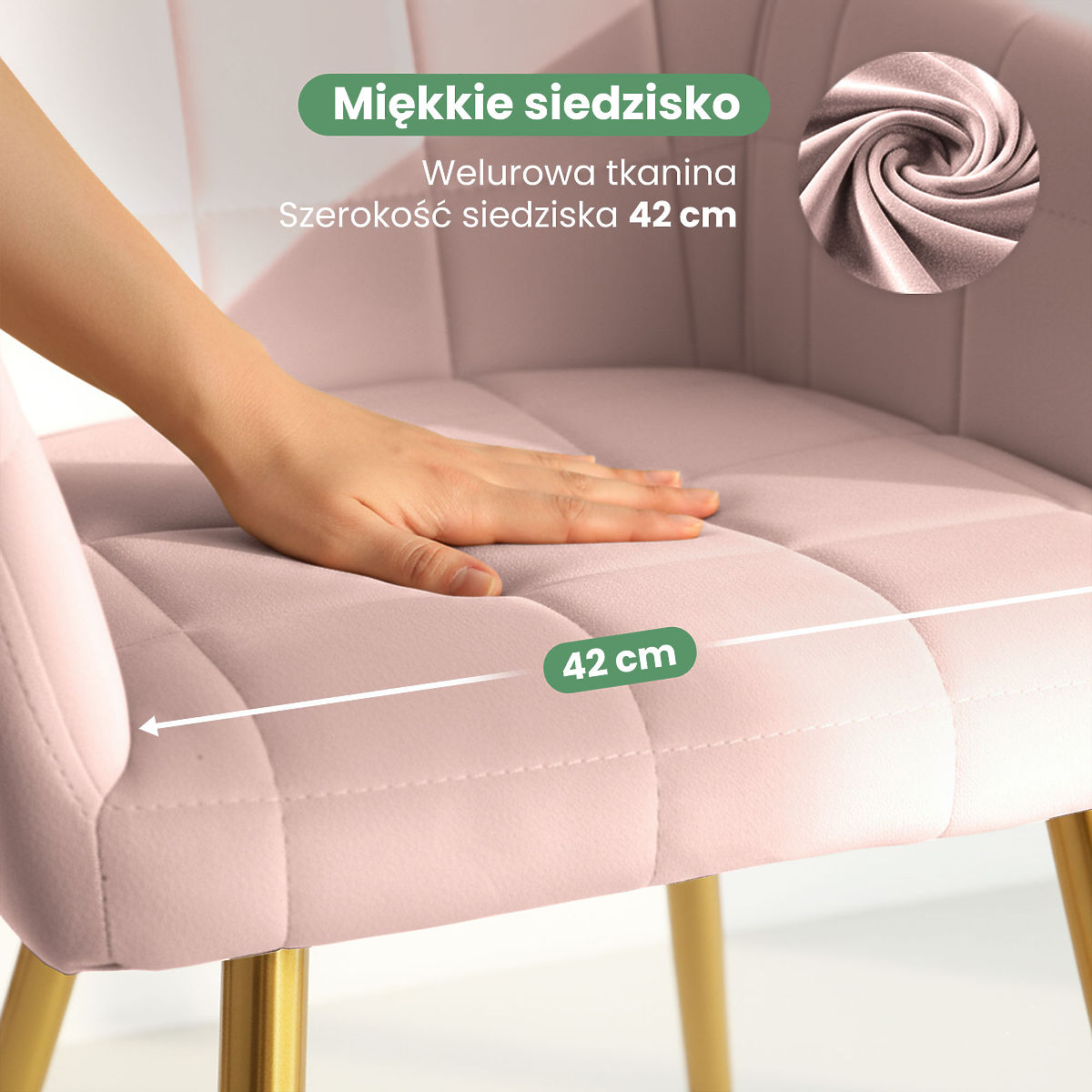 Banaby.ro » Mobilă / Masă sufragerie / Scaun de masă / 6x Scaun tapițat cu cusături pătrate Roz Pudră LUXANO Picioare aurii