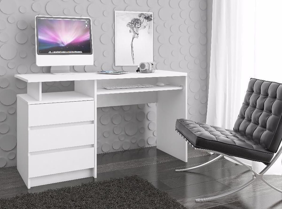 Biroul alb, independent, este un mobilier modern proiectat, care se potrivește perfect standardelor actuale de amenajare. Atrage prin simplitatea și eleganța sa, în culoarea albă la modă. Biroul include trei sertare spațioase, un raft deschis, un raft extensibil pentru tastatură și un blat larg (135 centimetri). Biroul independent CLP se potrivește perfect atât în birou, cât și în biroul de acasă. Această ofertă va îndeplini cu siguranță așteptările celor pentru care blatul de lucru este cel mai important. Adâncimea sa este de până la 60 de centimetri, ceea ce permite utilizarea confortabilă a computerului și a altor accesorii de birou. Produsul este, de asemenea, popular ca birou de jocuri, unde spațiul și confortul utilizatorului în timpul jocurilor lungi sunt foarte importante.