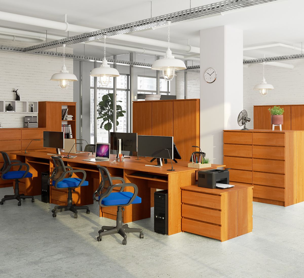 Birou independent! Partea din spate a biroului este finisată cu placă laminată, permițând amplasarea mobilierului oriunde, fără a fi necesar să fie așezat lângă un perete.