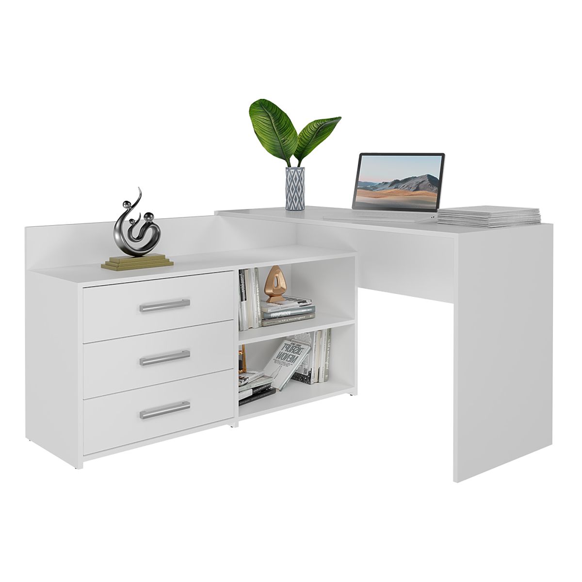 Biroul de colț cu 3 sertare este o soluție funcțională pentru persoanele care au nevoie de mult spațiu pentru lucru și pentru a-și aranja cele mai importante unelte de lucru într-un mod convenabil.
