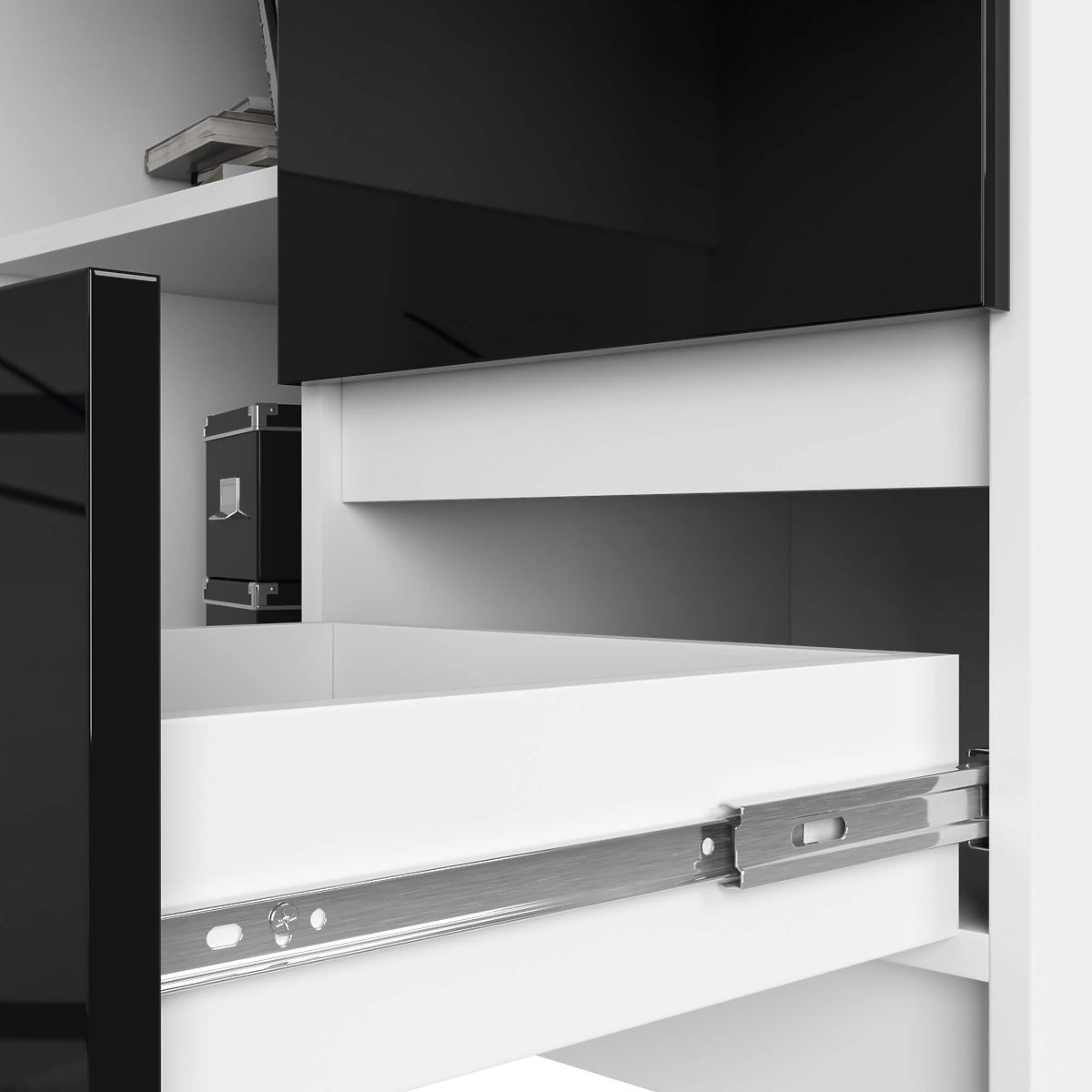 - Sertarele se mișcă pe ghidaje metalice cu role