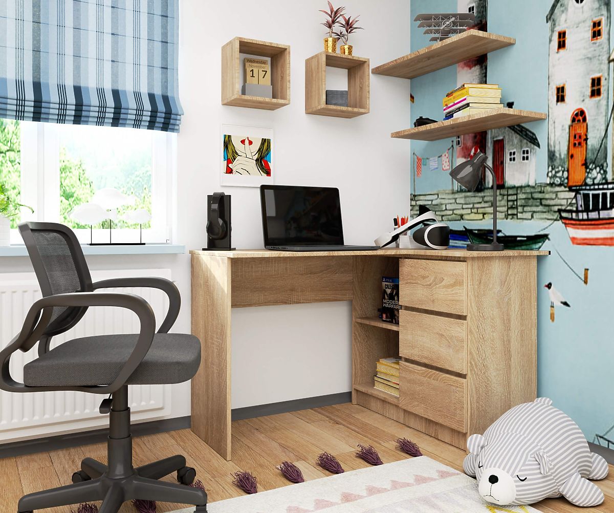 Banaby.ro » Mobilier pentru copii / Mese pentru copii / Birouri pentru copii / BIROU DE COLȚ B16 CLP DREAPTA PK SONOMA