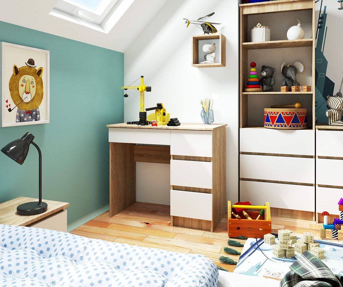 Banaby.ro » Mobilier pentru copii / Mese pentru copii / Birouri pentru copii / BIROU DE SCRIS A-7 CLP SONOMA / ALB PK DREAPTA