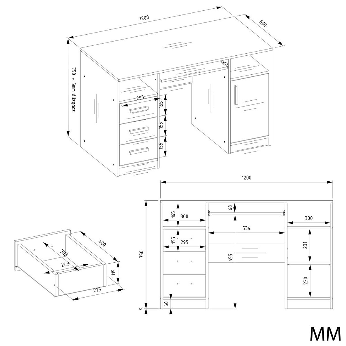 Echipat cu 3 sertare și un dulap închis cu 1 ușă și 2 polițe, oferă suficient spațiu de depozitare pentru documente, cărți sau articole de birou. În plus, sub blat este disponibilă o poliță extensibilă pentru tastatură, facilitând utilizarea computerului.
