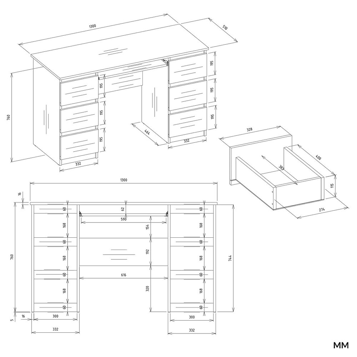 Birou alb KUBA cu suport și 6 sertare spațioase. .. mai mult