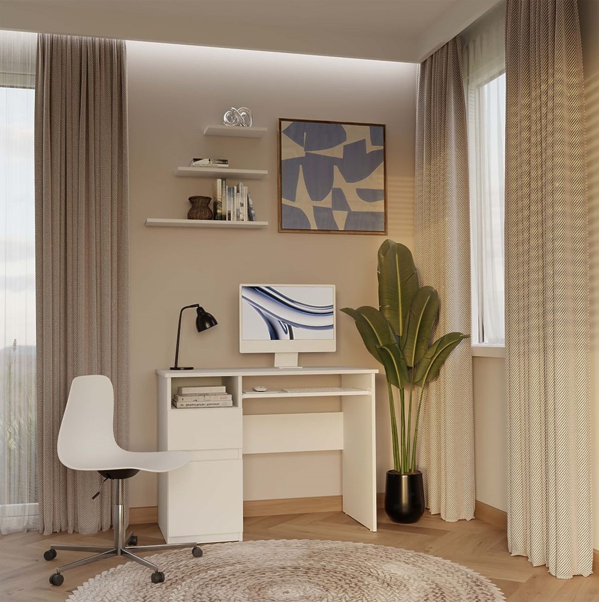 Birou alb Porto Stânga cu sertar și poliță pentru tastatură. .. mai mult