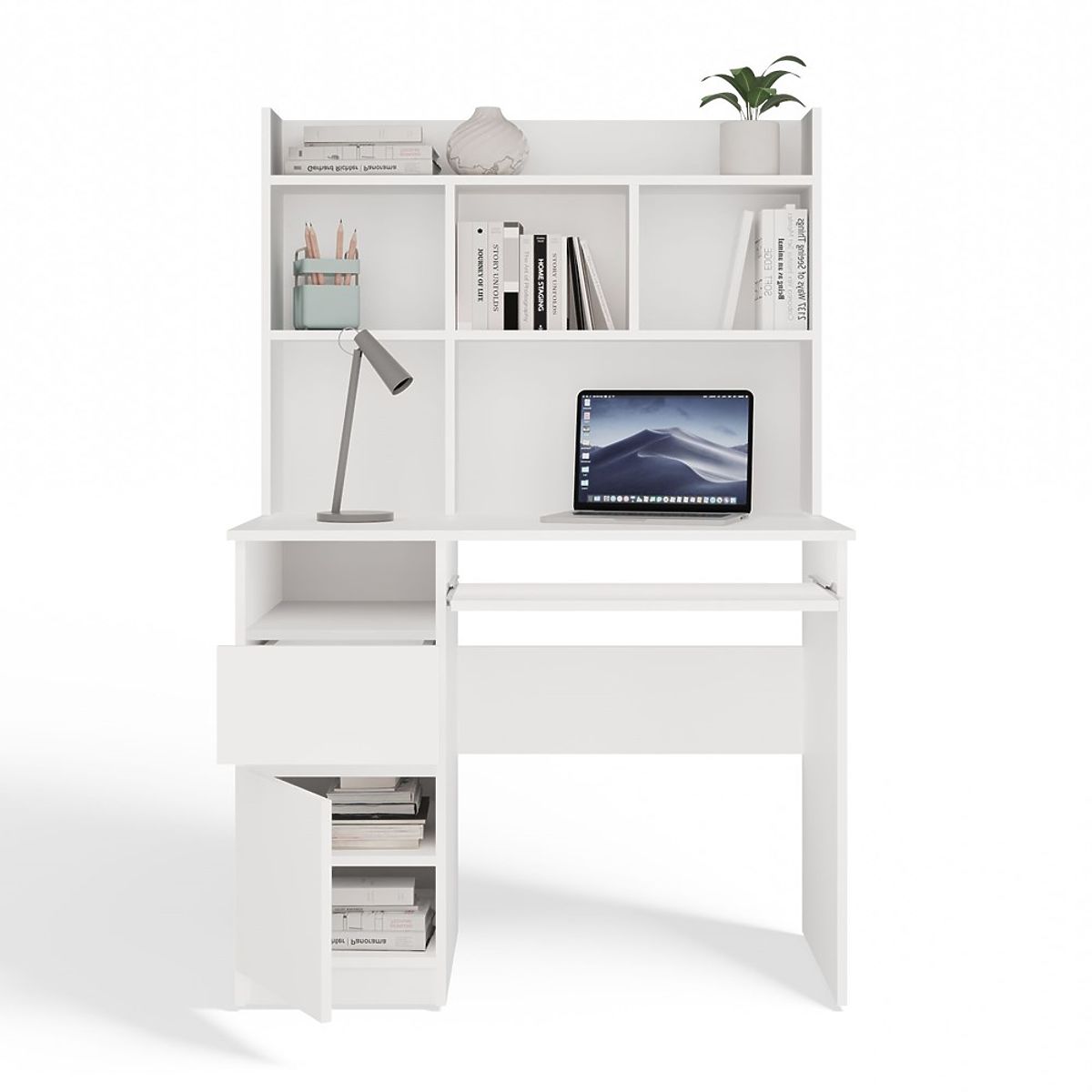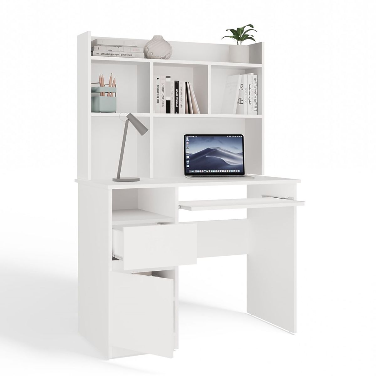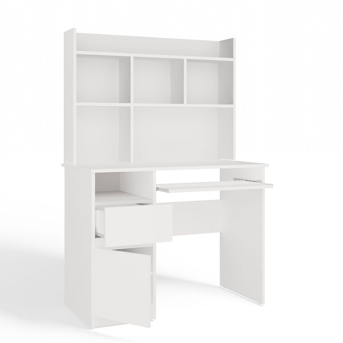 Birou PORTO Stânga cu Suprastructură Alb Mat Sertar Rafturi pentru Birou Cameră