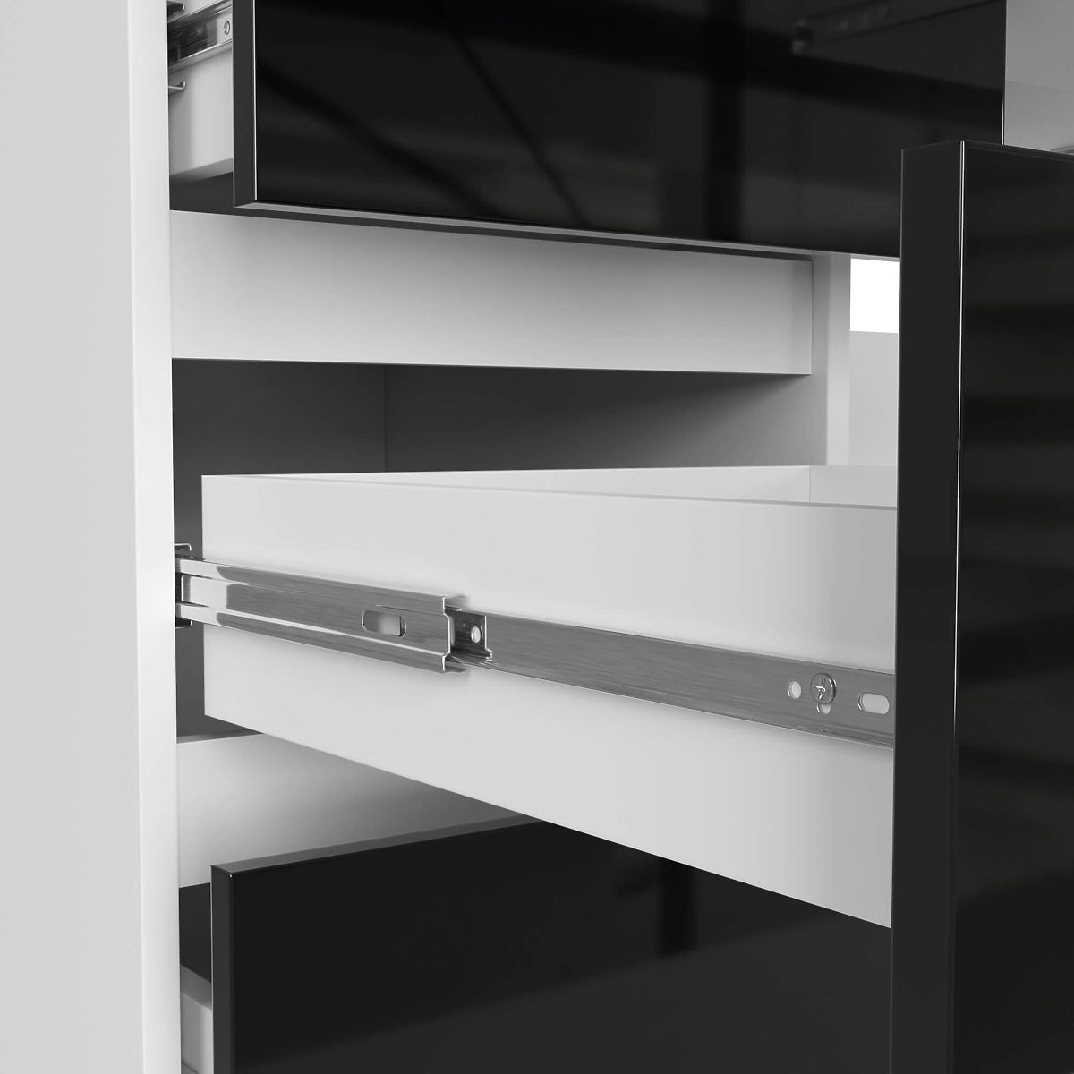Culoare albă cu suprafețe frontale în negru lucios