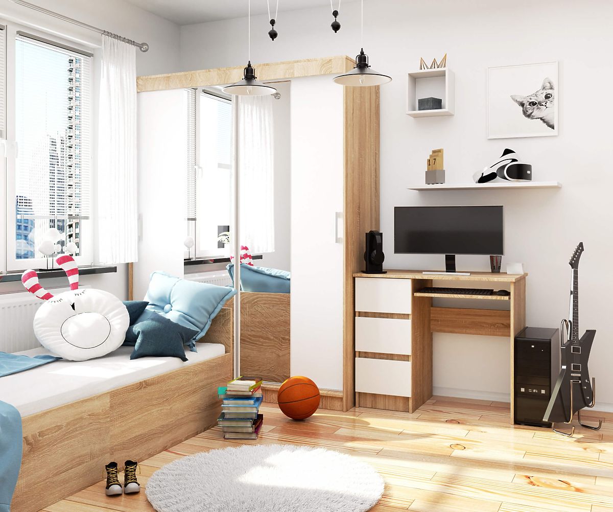 Masă de calculator A-6 mică și elegantă în culoarea stejarului sonoma este o alegere perfectă pentru tineri și iubitorii de interioare moderne. Arată elegant și se potrivește tendințelor actuale. Mobilierul se adaptează practic oricărei încăperi, chiar și celor mai mici, fiind în același timp eficient în utilizare. Blatul mesei de 90 cm x 50 cm oferă suficient spațiu pentru rechizite școlare, manuale și un laptop sau calculator.
