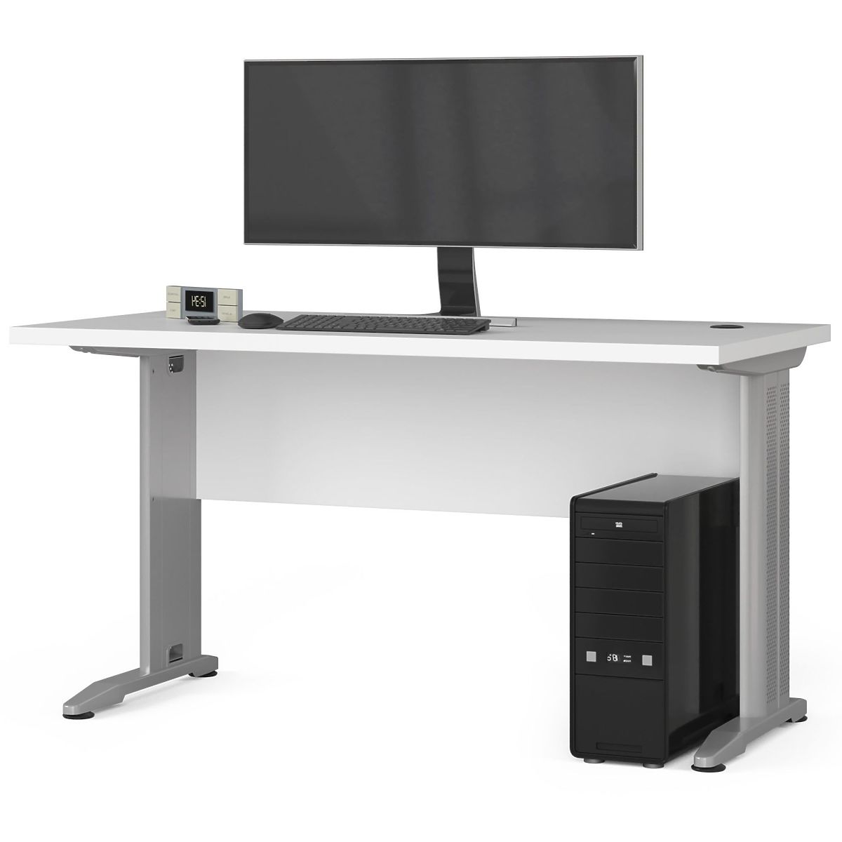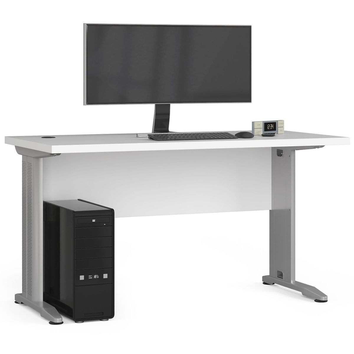 Masă albă BM-135 pentru birou sau casă, cu blat mat și picioare metalice. .. mai mult