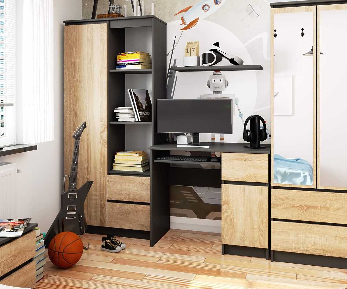 Banaby.ro » Mobilier pentru copii / Mese pentru copii / Birouri pentru copii / MASĂ DE CALCULATOR PIKSEL PK GRI / STEJAR SONOMA - DREAPTA