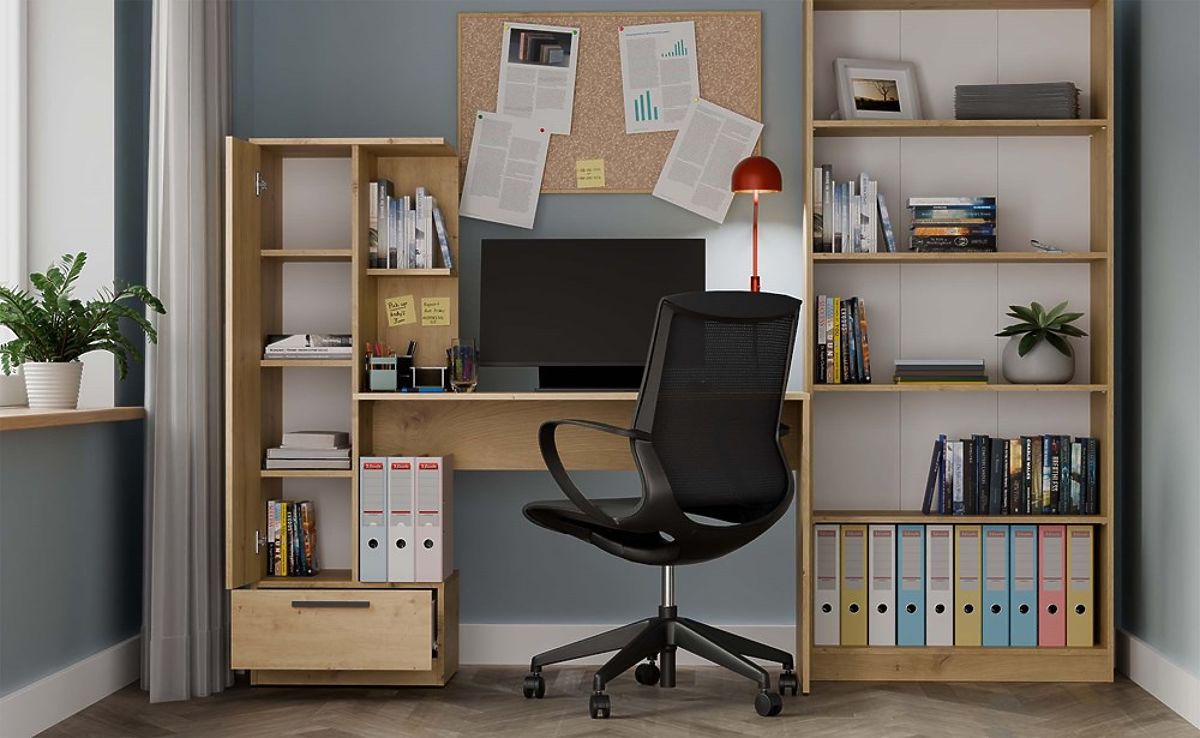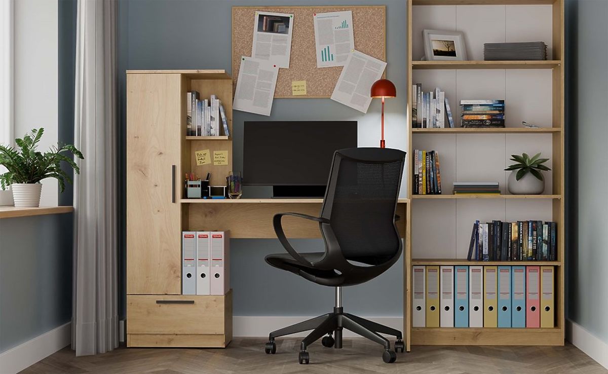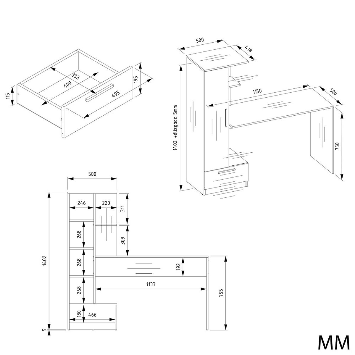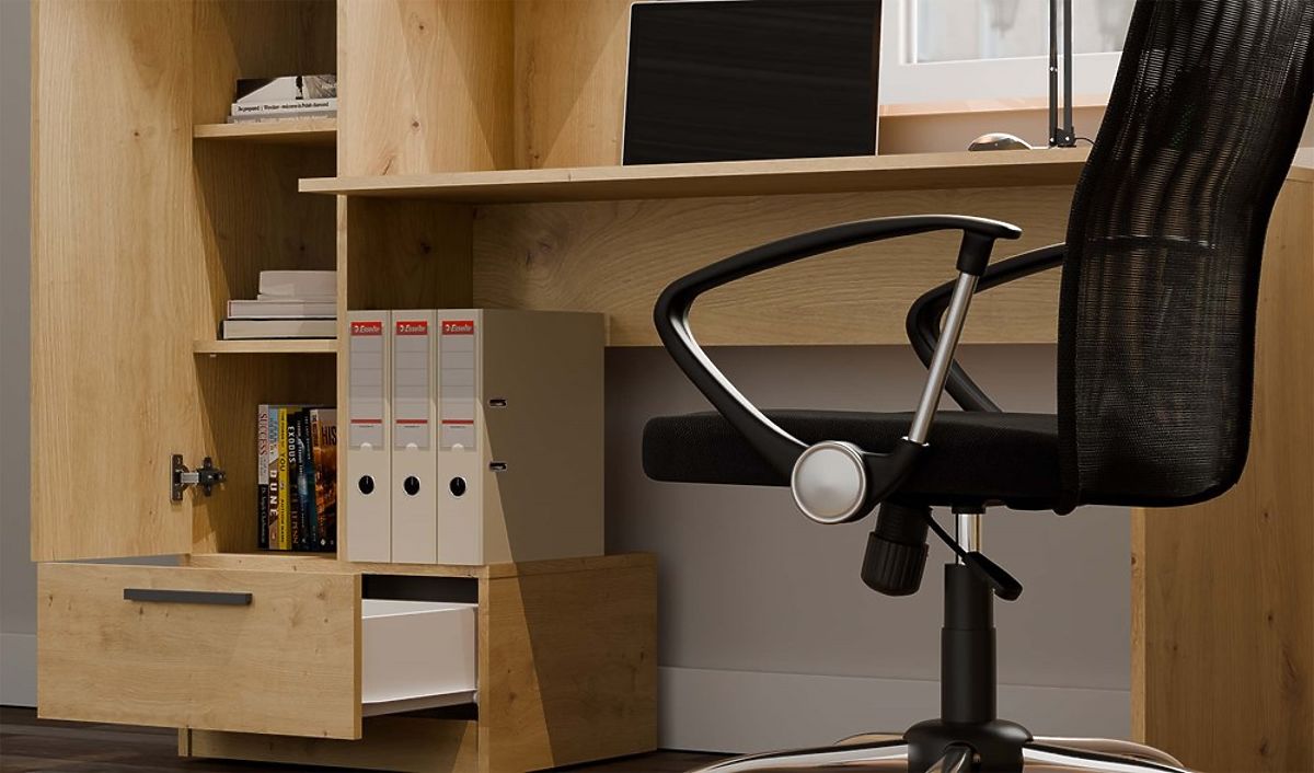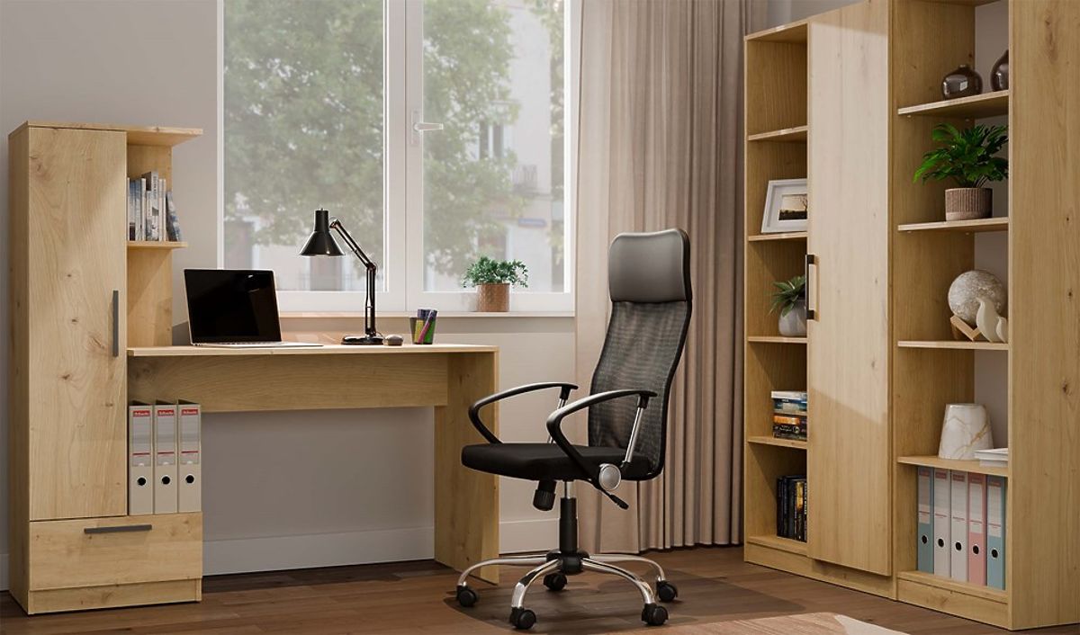 Biroul COSMO este alegerea ideală pentru cei care apreciază ergonomia, stilul modern și ordinea la locul de muncă sau studiu. Raftul funcțional și blatul de lucru larg permit crearea ușoară a unei zone de lucru confortabile – chiar și într-o cameră mică.