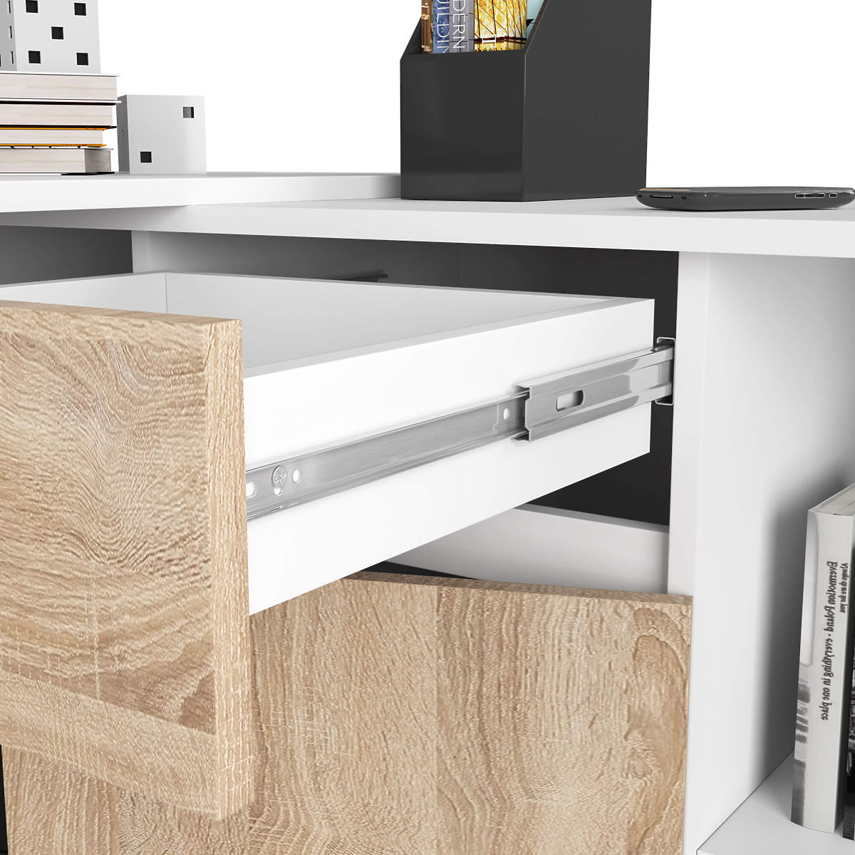 Masă de colț B-17 albă/sonoma cu comodă bicoloră. .. mai mult