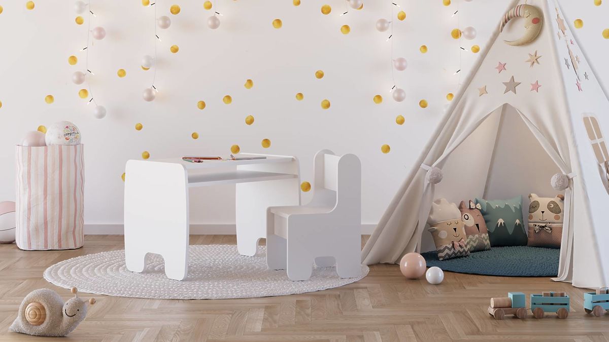 Setul TIMI este o alegere excelentă pentru părinții care doresc să asigure copilului un loc confortabil, sigur și estetic pentru jocuri creative și învățare.