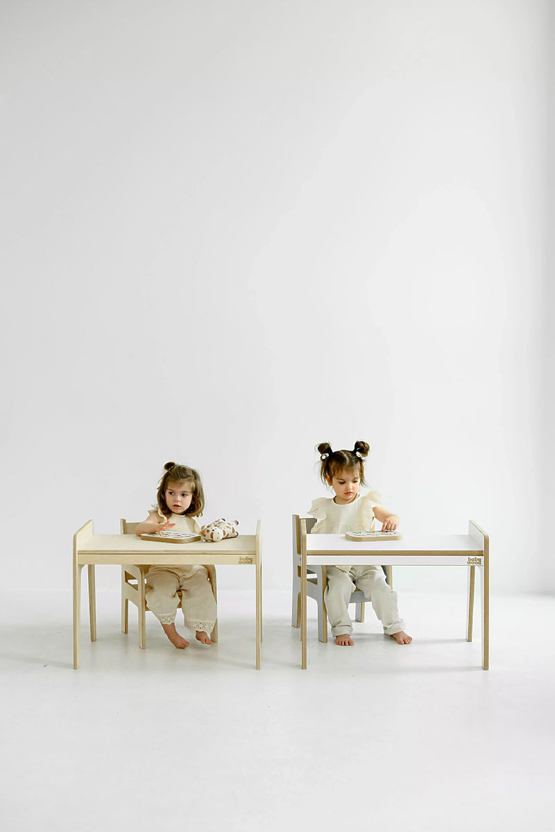 Setul de măsuță și scăunel este soluția ideală pentru micii exploratori și sufletele creative. A fost proiectat cu accent pe confort, siguranță și libertatea de mișcare în timpul jocului, desenului și învățării. Forma minimalistă, designul atemporal și materialele naturale transformă setul într-un element frumos și funcțional al camerei copilului. Marginile rotunjite și construcția stabilă oferă siguranță maximă, în timp ce înălțimea corectă a mobilierului sprijină independența copilului și o poziție sănătoasă de ședere.