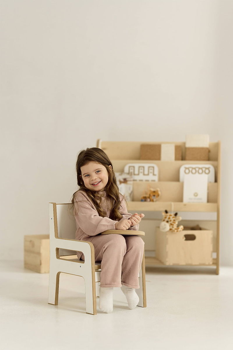 Scaunul pentru copii din lemn este potrivit pentru copii de diferite vârste - de la un copil de un an care descoperă lumea, până la un preșcolar creativ mai mare. Oferă un suport ferm pentru spate și asigură o ședere confortabilă în timpul jocului, desenului sau mesei. Este util și în bucătărie sau baie - copilul poate sta pe șezut și ajunge ușor la blatul de lucru sau la chiuvetă. Toate marginile sunt atent rotunjite pentru a asigura siguranța maximă a micilor utilizatori.