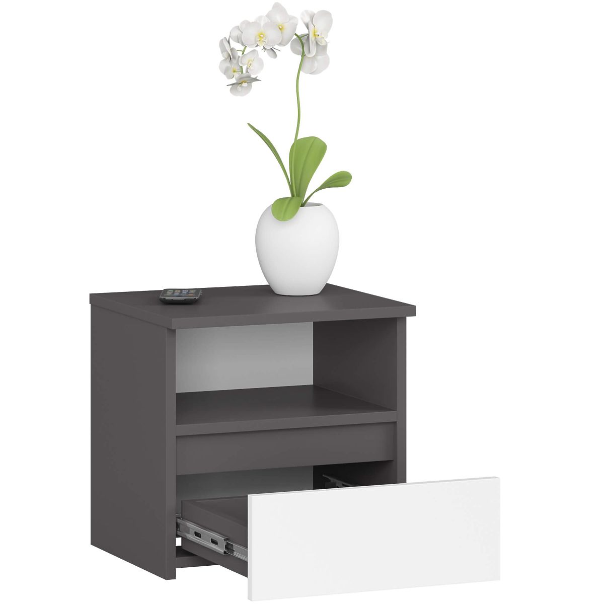 Noptierele sunt un tip popular de mobilier care se plasează lângă pat. Pe suprafața sa se află cel mai adesea o lampă, în timp ce în interior se găsesc obiecte care facilitează odihna și somnul. Persoanele care caută o comodă elegantă ar trebui să acorde atenție noptierei CL1 de 40 cm în culoarea grafit gri cu fețe albe. Se va evidenția frumos în orice dormitor. Poate fi plasată și în camera copiilor.