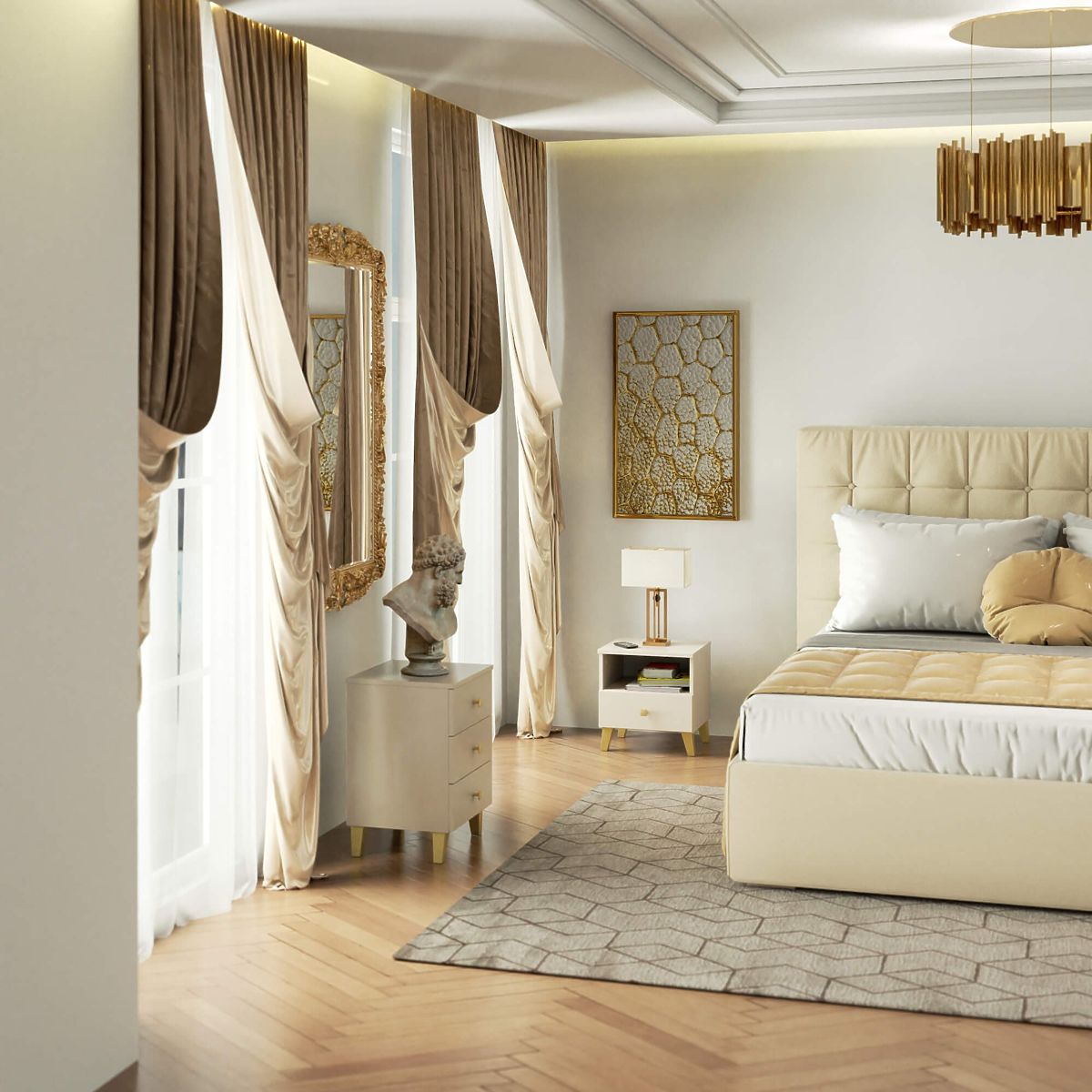 - aspect modern - mobilierul este simplu în formă, atrage prin combinația interesantă de culori cașmir cu aur,