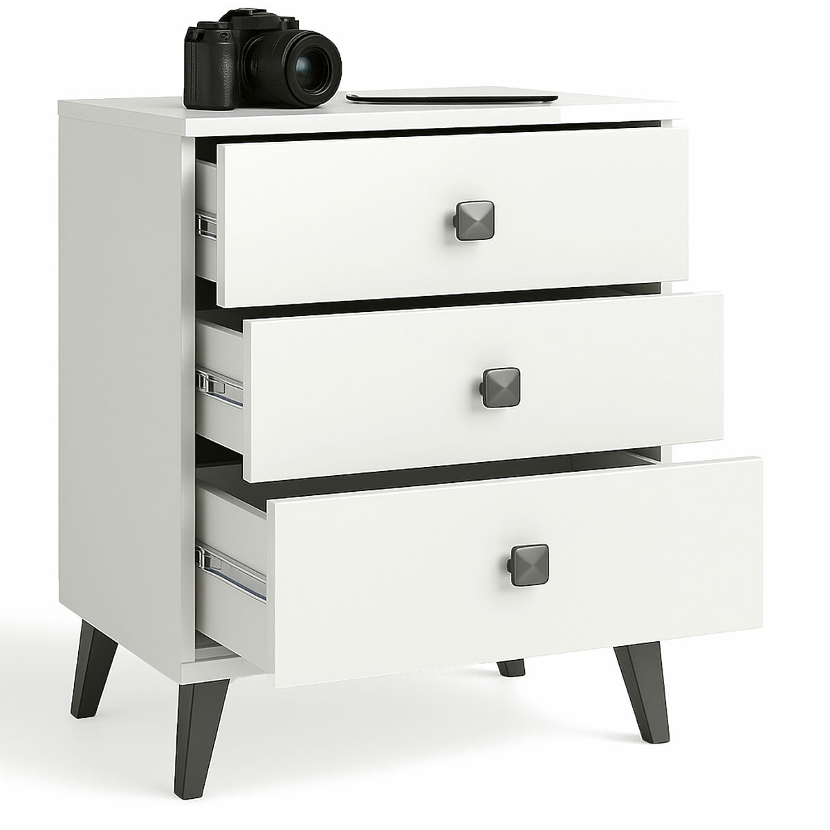 Banaby.ro » Mobilier pentru copii / Mese pentru copii / Noptiere pentru copii / COMODĂ MOBI K-03 ALBĂ NEAGRĂ