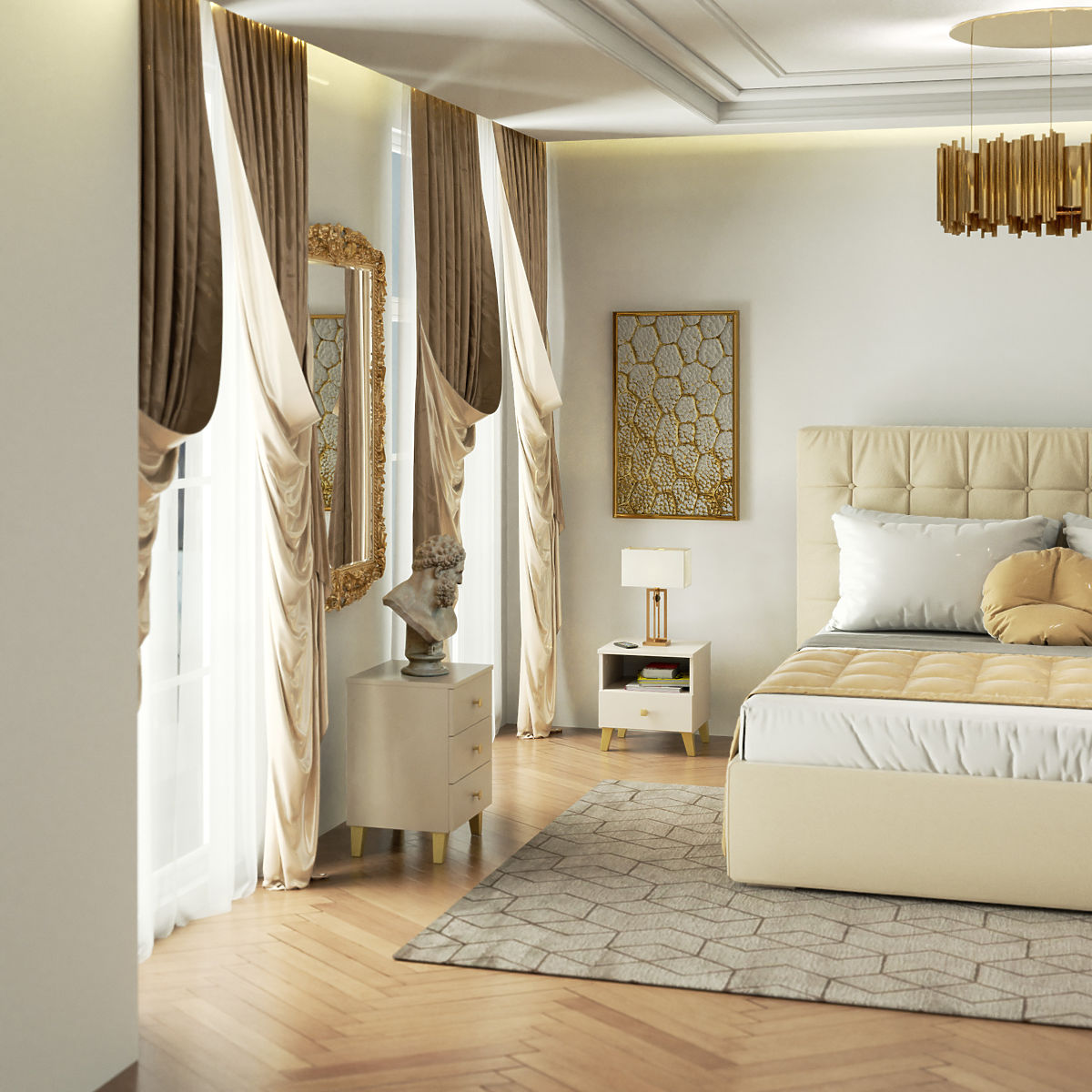 - aspect modern - mobilierul are o formă simplă, iar combinația interesantă de culori cașmir cu auriu atrage atenția,