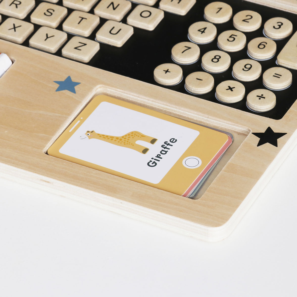 Laptop educativ din lemn cu litere și cifre magnetice. .. mai mult