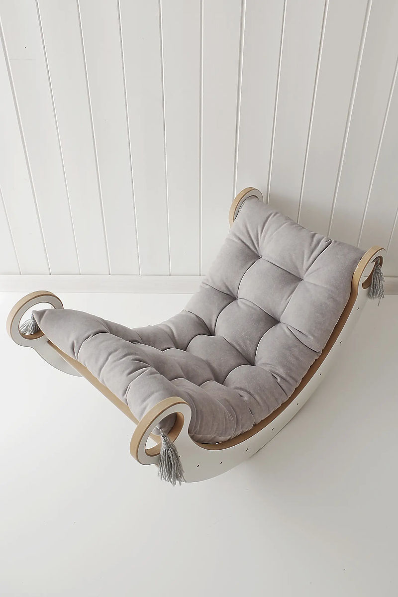 Leagănul stilat din lemn Montessori S de culoare albă se potrivește perfect în orice cameră de joacă sau dormitor pentru copii. Acest element multifuncțional nu doar că oferă o balansare distractivă, dar poate fi folosit creativ în joacă – ca bază pentru construcții, ascunzătoare secretă sau mici tejghele comerciale. În mod natural, susține dezvoltarea abilităților motorii, echilibrului și forței copiilor. Leagănul Montessori S este sigur și durabil datorită construcției sale robuste și utilizării materialelor de calitate. Designul său simplu și atemporal se integrează ușor în orice interior, oferind copiilor ore de distracție și contribuind în același timp la dezvoltarea lor fizică și mentală.