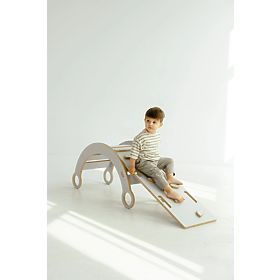 Banaby.ro » Montessori / Leagăne Montessori / Leagăn Montessori din lemn cu tobogan/perete de cățărare M - alb