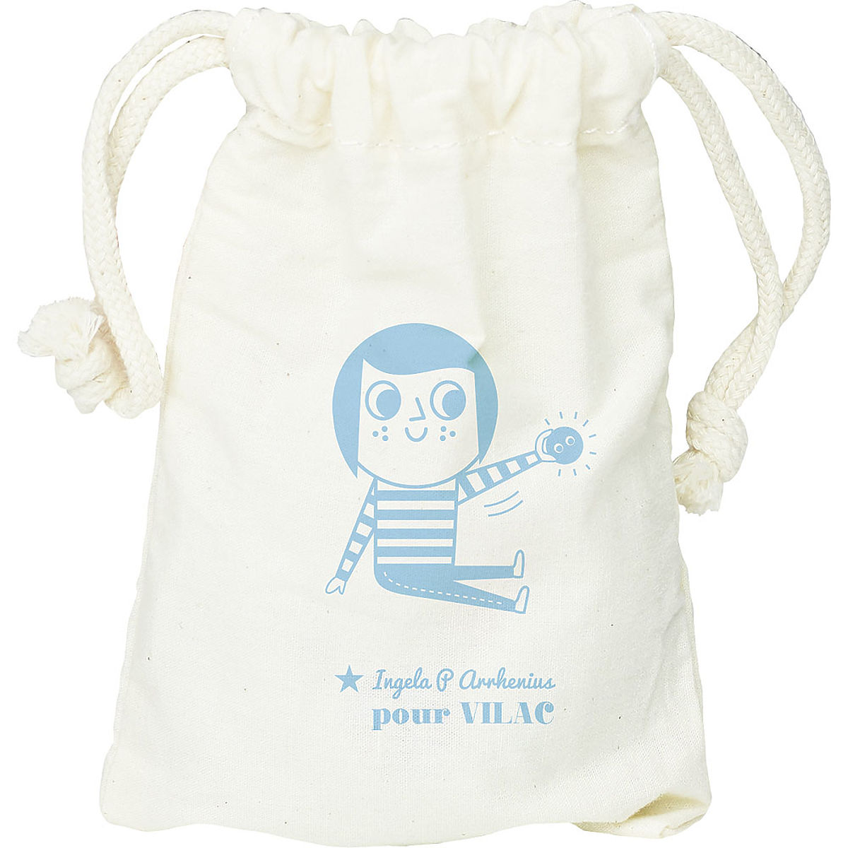 Un iepuraș drăguț ca o maracasă. Ilustrație de Ingela P. Arrhenius. Fabricat din lemn și pâslă în Franța. Diametru de 8 cm. Principalele caracteristici: fabricat în Franța, design Ingela P. Arrhenius. Artista suedeză Ingela Peterson Arrhenius s-a născut în 1967. Arta și designul au avut întotdeauna un loc în viața ei și, înainte de a începe cariera de ilustratoare, Ingela a lucrat ca director artistic în Stockholm. Apoi a studiat publicitate și design grafic la o școală de artă tot în Stockholm. În 1992, a început să lucreze ca ilustratoare freelancer și a lucrat internațional în publicitate, design, editură... În trecut, a creat modele tipărite pentru țesături, tapet, papetărie, a lucrat și la ambalaje, design de produse, accesorii de casă și jucării. Posterele și jucăriile ei de design pot fi găsite în întreaga lume. Are o pasiune pentru stilul retro, ceea ce este clar vizibil în lucrările sale și în entuziasmul ei pentru tipografie și culori. Acum locuiește în Stockholm cu soțul și cei doi fii ai săi.