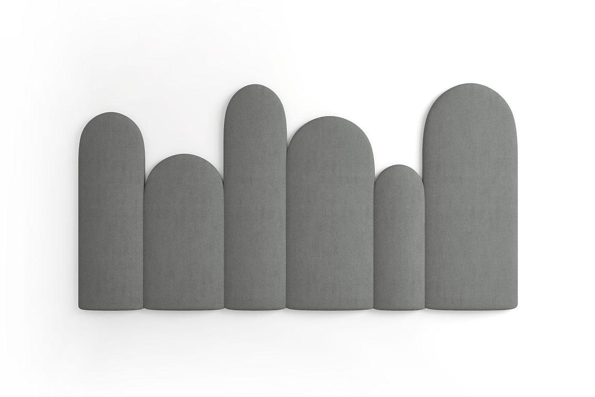 Setul de panouri tapițate este o soluție originală pentru a înviora camera copilului sau dormitorul. Include 6 module cu marginea superioară rotunjită, amintind de un gard, care pot fi combinate liber pentru a crea propriile aranjamente pe perete. Panourile sunt fabricate cu accent pe calitate, siguranță și confort. Designul gri are un aspect universal și se combină ușor cu alte mobilier și accesorii.