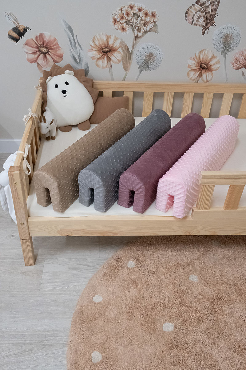 Moale, sigur și frumos. Așa este protecția pentru pat Ourbaby de culoare roz prăfuit, care este un accesoriu excelent pentru orice cameră de copii. Protecția este fabricată din spumă poliuretanică de înaltă calitate și are o husă din material moale și plăcut Minky. Este disponibilă în trei dimensiuni, adaptându-se perfect la orice pat.