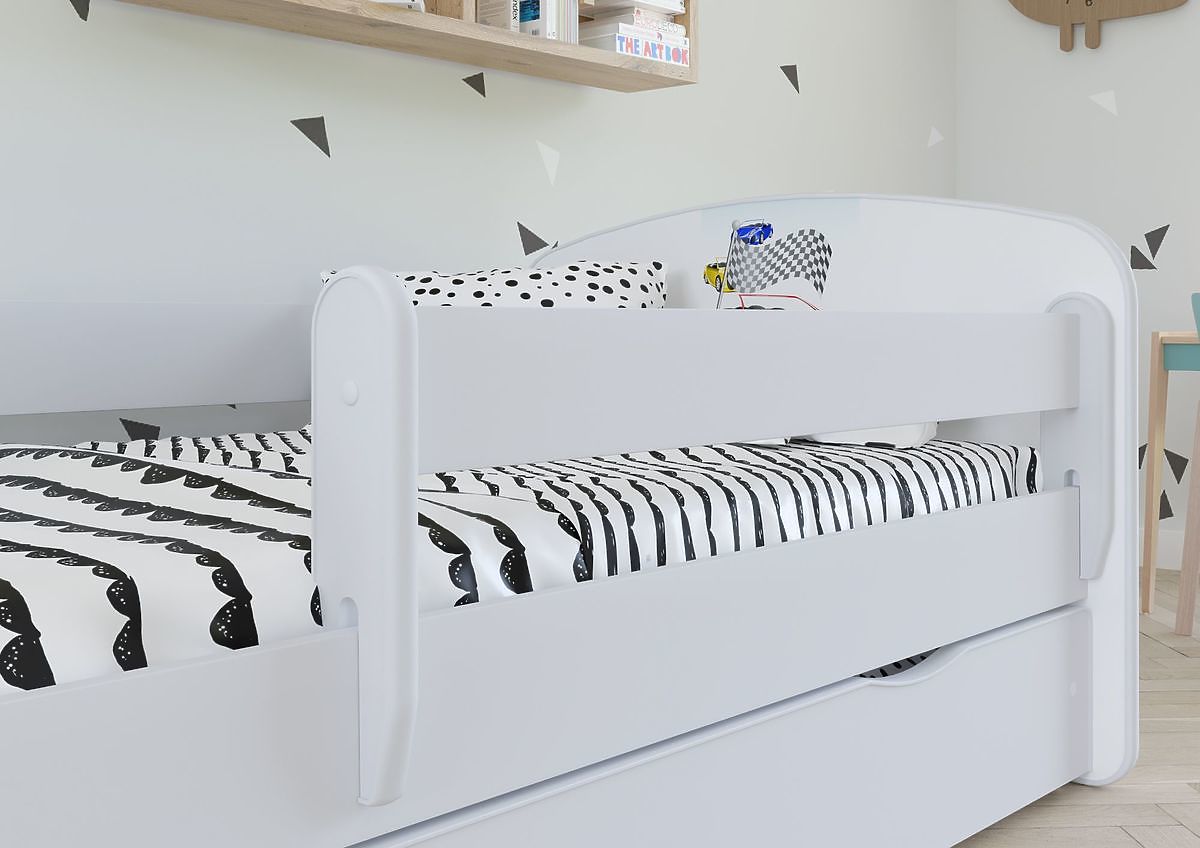 Patul pentru copii oferă siguranță maximă datorită marginilor rotunjite că copiii nu vor fi răniți. O pază detașabilă de 100 cm protejează copilul de o cădere neplăcută din pat.