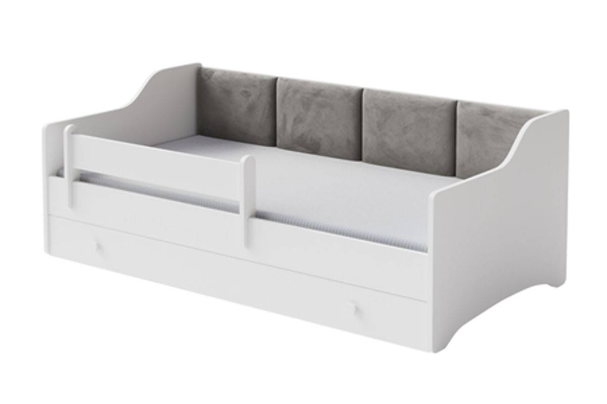 Banaby.ro » Paturi pentru copii / Paturi cu barieră pentru copii / Pat pentru copii ERYK cu sertar și barieră 160x80 panou gri