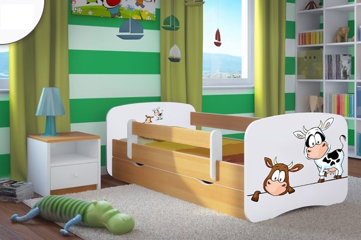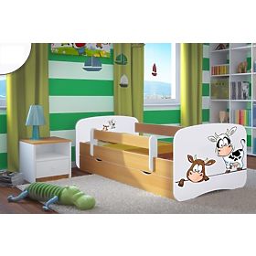 Banaby.ro » Paturi pentru copii / Paturi cu barieră pentru copii / Pat pentru copii Ourbaby cu sina de siguranță - Vacute - Fag