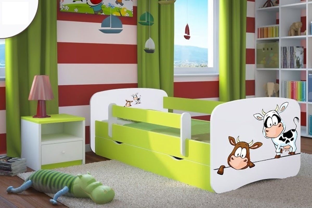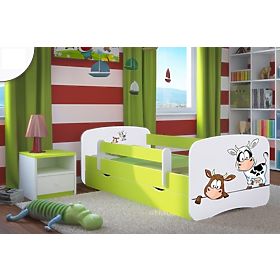 Banaby.ro » Paturi pentru copii / Paturi cu barieră pentru copii / Pat pentru copii Ourbaby cu sine de siguranta - Vacute - verde