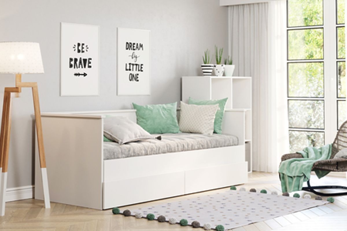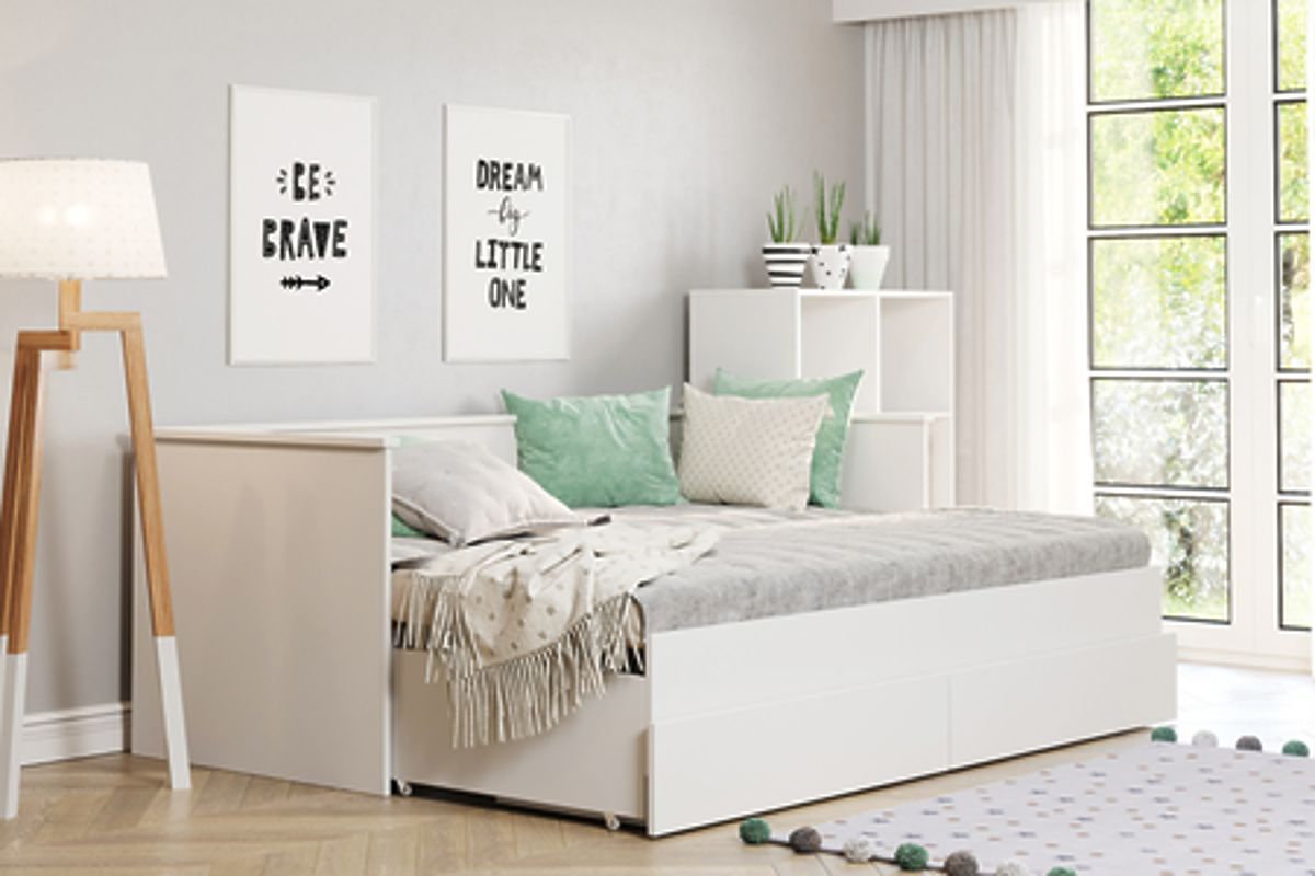 Patul HELIOS este un pat modern extensibil pentru tineret, care combină un aspect elegant cu funcții practice. Datorită posibilității de extindere rapidă într-un pat dublu, prin glisarea bazei inferioare, acest mobilier este ideal atât pentru camere mici, cât și pentru cele spațioase. Designul său universal în culoarea albă se potrivește oricărui stil de interior, oferindu-i un caracter modern și o eleganță subtilă.