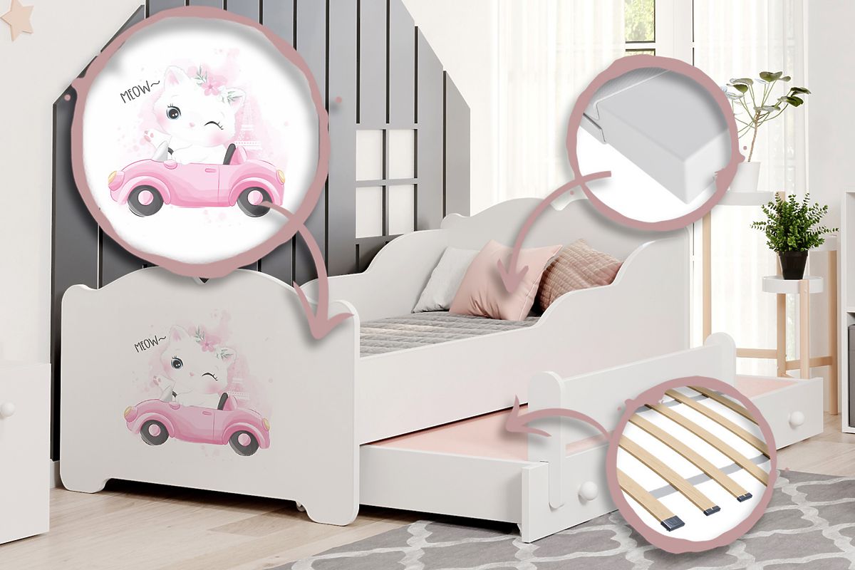 Pat dublu pentru fete ANNA 160x80 cu imprimeu Pisică. .. mai mult