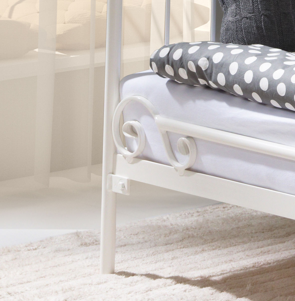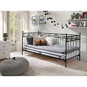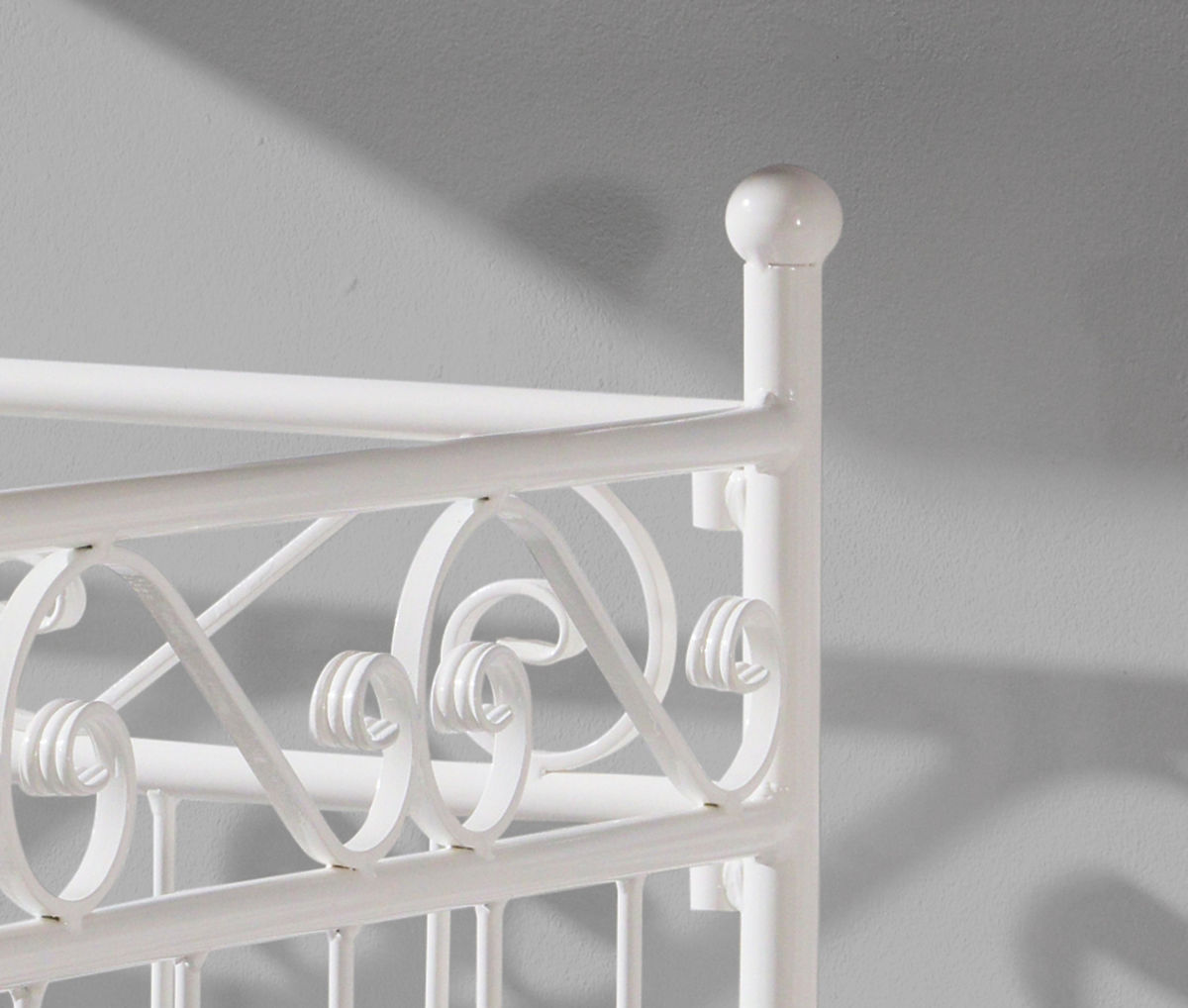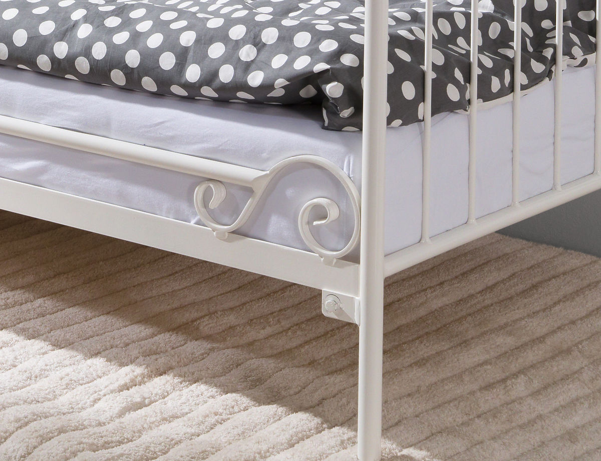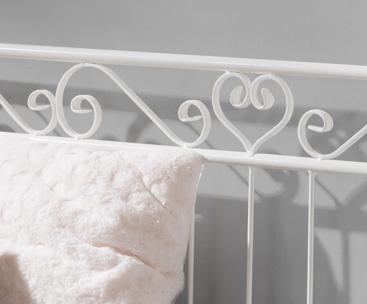 Acest frumos pat de metal facut de mana va aduce eleganta si stil in dormitorul copilului tau.Te vei dragosti de aceste detalii decorative uimitoare,cum ar fi inima pe partea patului sau barele metalice cu forma S.Forma originala a patului poate fi folosita de asemenea ca si o canapea. Toate cele 4 posturi sunt rotunjite la capete care este sigur si practic.C a si o canapea,completeaza de minune dormitorul copiilor,tersa sau gradina. Patul este facut din otel de inata calitate.Cadrul sau de metal este foarte solid si stabil.Picioarele sale sunt de asemenea facute din tuburi de metal cu diametrul de 27 mm si sine de support cu diametrul de 21 mm.Barele de metal au 8 mm in diametru.Patul vine insotit de o baza de lemn sectionata,dar salteaua nu este inclusa.Poate fi gasita in panelul din stanga in sectiunea SALTELE,de unde puteti alege marimea potrivita.Noi recomandam o saltea cu grosimea de 16 cm. Datorita faptului ca patul este sudat de mana,pot sa apara deviate de pana la 1 cm. Dimensiunile exterioare: -inaltimea:aprox 100 cm -inaltimea de la podea pana la saltea:aprox 22 cm -latimea cadrului:aprox 95 cm -lungimea cadrului:aprox 207 cm Masurile interioare: -latimea patului:90 cm -lungimea patului:200 cm