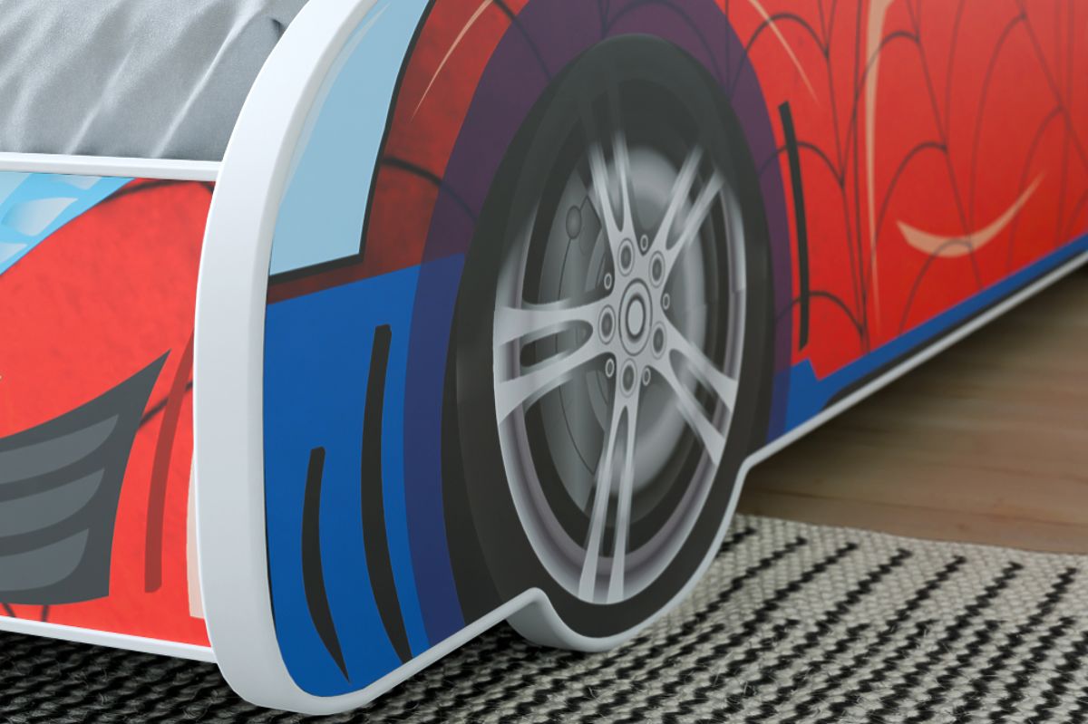Pat auto pentru copii cu design de supererou și dimensiuni 160x80 cm. .. mai mult