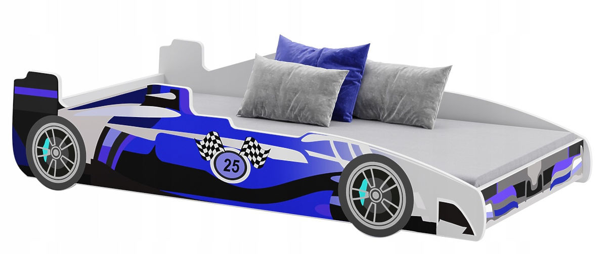 Patul Formula albastru pentru copii, inspirat de mașinile de curse, oferă siguranță și confort. .. mai mult