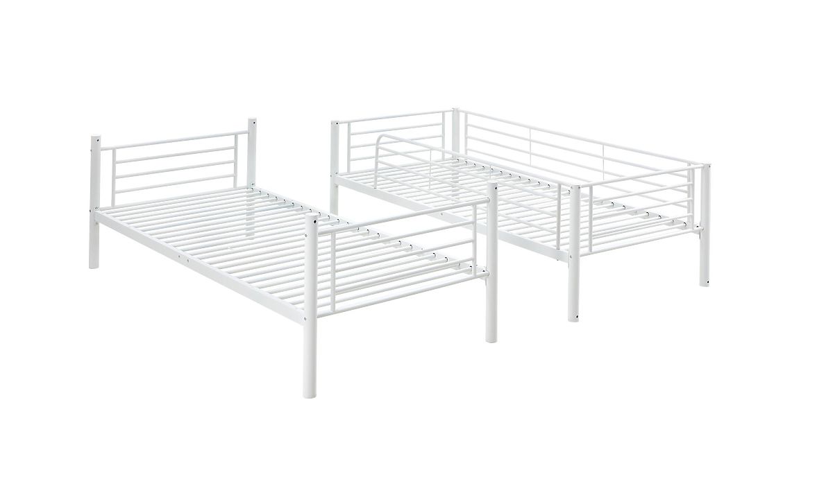 Pat metalic supraetajat alb pentru camere mici, cu opțiune de separare. .. mai mult