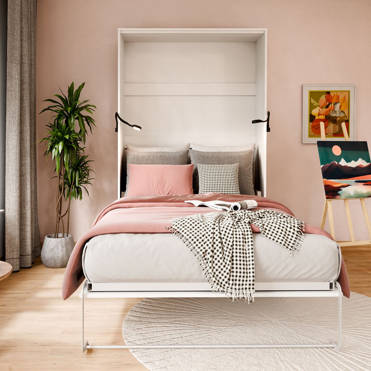 Modelul VERTO înlocuiește perfect patul tradițional, oferind confort și spațiu suplimentar pe parcursul zilei. Odată închis, devine un ansamblu de perete minimalist, iar mecanismul său ușor și sigur facilitează utilizarea zilnică. Este ideal pentru garsoniere, camere de studenți, birouri, dormitoare sau camere de zi. Fabricat din placă de mobilier durabilă și disponibil în multe dimensiuni și culori, permite adaptarea la diferite aranjamente. Detaliile bine gândite și construcția solidă asigură că mobilierul rezistă la utilizarea zilnică intensă. Culorile produsului pot varia ușor în funcție de setările ecranului.